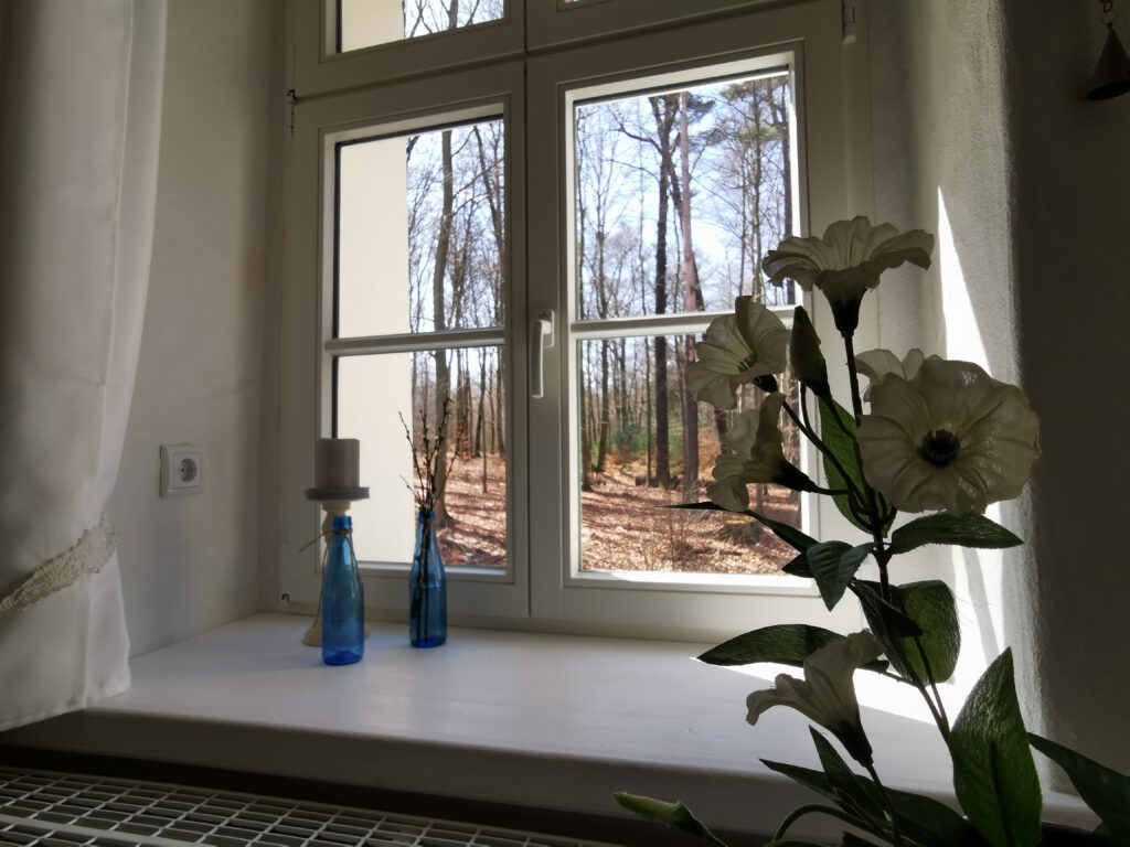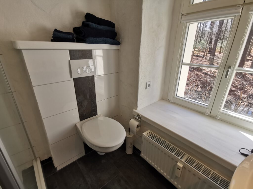 Der Blick in den alten bezaubernden Wald aus dem Schlafzimmerfenster und Bad lässt schon beim Schauen wie Erholung wirken. Lassen Sie den Alltag hinter sich, genießen Sie einfach den Moment.